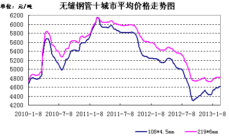 2、2013年2月7日包鋼對無縫管產品出廠價格進行調整:Φ38-245在上期的基礎上上調100元/噸。現20#Φ108*4.5掛牌價格為4760元/噸。(以上價格政策為出廠含稅價格,自