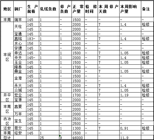中商網(wǎng)訊:本周唐山21家鋼廠共25條145mm帶鋼線,其中16條帶鋼線生產(chǎn)正常,9條檢修,影響產(chǎn)量11.9萬(wàn)噸;開工率64%,較上周持平。