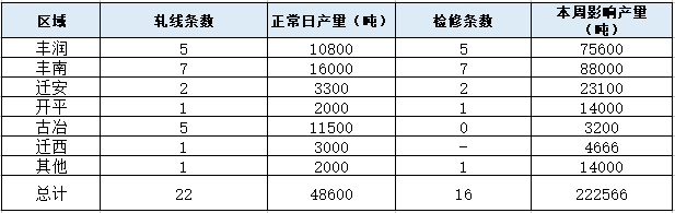 中商網(wǎng)訊:本周唐山18家145帶鋼廠22條帶鋼線中,16條檢修或停產(chǎn),影響產(chǎn)量22.26萬(wàn)噸,產(chǎn)能利用率為34.58%,較上周下降1.35%,6條帶鋼線正常生產(chǎn),開(kāi)工率為27.28%,較上周下降9.08%