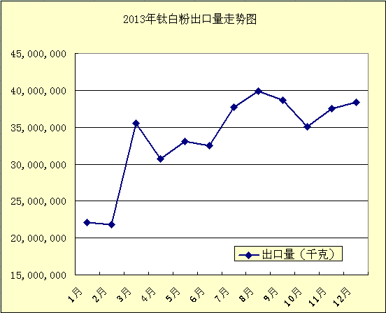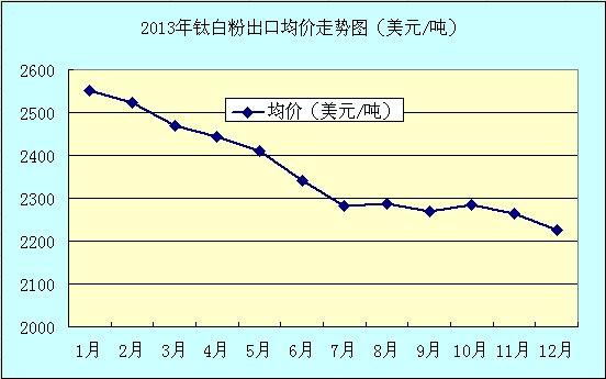 2013年對于國內的鈦白粉生產企業來說并不好過,去年前9個月,國際鈦白巨頭不斷提價,特諾和杜邦率先宣布提價,科斯特、亨斯曼、ISK先后宣布從7月1日起上調亞太地區鈦白粉價格,上調幅度最低為100-200美元/噸,這有效的拉動了國產鈦白粉的出口,但由于產能的釋放,供需關系不平衡以及產品較為低端,造成了單價一直處于下行空間。2013年1-12月累計鈦白粉進口量193747.121噸,同比上漲18.6%,進口金額52819.5208萬美元,同比下降3.3%,進口均價2726.2美元/噸,同比下降18.5%;1-12月累計出口403036.683噸,同比上漲 4.7%,出口金額94557.043萬美元,同比下降16.7%,出口均價2346.1美元/噸,同比下降20.4%。由這組數據可以看出,2013年鈦白粉在出口上雖然量比較大,但價格卻呈現出了走低的現象。