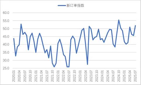 政策提振作用顯現(xiàn),鋼鐵需求表現(xiàn)回暖。7月份,雖然高溫多雨等極端天氣持續(xù)存在,但政策端為國內(nèi)市場帶來較強提振。據(jù)相關(guān)機構(gòu)鏈了解,7月國內(nèi)推“反內(nèi)卷”運動式展開,各行業(yè)均有在供給端發(fā)力意向,因此整體市場預(yù)期向好,鋼鐵需求表現(xiàn)回暖。鋼鐵行業(yè)新訂單指數(shù)為51.9%,環(huán)比上升6.3個百分點,時隔2個月重回擴張區(qū)間,指數(shù)創(chuàng)下近9個月以來新高。終端需求也呈現(xiàn)回升態(tài)勢,以滬市終端線螺采購為例,7月環(huán)比增長12.6%,出現(xiàn)難得的淡季回升表現(xiàn)。