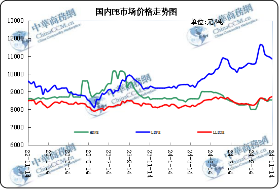 后市預測:本周聚乙烯市場價格繼續上行,成本端支撐表現有限,需求端表現一般,聚乙烯市場后續或將繼續窄幅調整,預計下周聚乙烯價格或將窄幅走弱,不排除有期貨強力拉動影響。美元持續走高,市場將不斷權衡特朗普政策及美元對油市的影響,美聯儲12月降息預期增強,市場對需求前景持偏消極態度。乙烯近期無檢修裝置重啟消息,疊加部分下游企業新增外采量,市場供應表現偏緊存有利好,需求端下游處于消化前期漲幅階。成本面對聚乙烯市場支撐有限。現階段市場內檢修裝置增加,供應能力持續減弱,市場庫存處于低位,聚乙烯市場內現貨不多,市場供需矛盾緩解。然隨著新增產能陸續投產、檢修裝置恢復,疊加農膜需求支撐降低,短期內供需面對聚乙烯市場支撐力或將持續減弱。綜合來看,供應端過剩擔憂仍存,市場逐漸淡化地緣局勢及颶風影響,預計下周國際原油價格仍將處于低位徘徊。利潤情況欠佳,后續挺價相對乏力,美金市場報盤持續走高,而新單成交較少,市場指引有限,預計下周乙烯市場大穩小動。成本面支撐有限、供需面支撐一般,疊加期貨市場波動等多重因素影響,聚乙烯后市仍然復雜多變。預下周國內市場價格偏弱震蕩。
