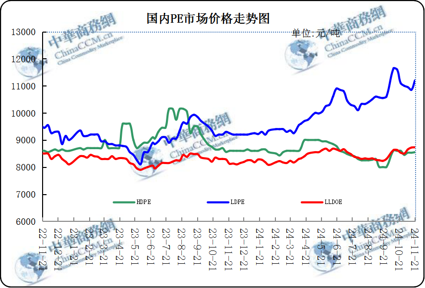 后市預測:本周聚乙烯市場價格繼續上行,成本端支撐表現有限,需求端表現尚可,聚乙烯市場后續或將繼續窄幅調整,預計下周聚乙烯價格或將延續窄幅整理,不排除有期貨強力拉動影響。本周原油市場消息多且復雜,但缺乏明朗的單邊驅動:俄烏局勢緊張,美聯儲12月降息概率有所下降。乙烯供應端部分前期檢修裝置近期無重啟計劃,市場供應依舊表現偏緊存有利好。需求端下游對高價較為抵觸,市場觀望氣氛濃厚。成本面對聚乙烯市場支撐有限,F階段市場內檢修裝置增加,供應能力下降,市場庫存處于低位,聚乙烯市場內現貨稍緊,市場供需矛盾被短暫緩解。然隨著后續新增產能陸續投產、檢修裝置恢復,疊加農膜需求持續衰減,短期內供需面對聚乙烯市場支撐力或將持續減弱。綜合來看,EIA原油及汽油庫存增加,反映出當前需求疲弱,對油市形成壓制;預計下周國際原油價格將以區間震蕩為主。成本端乏力,乙烯市場后續挺價相對乏力,美金市場報盤維持高位,成交清淡,市場指引有限,預計下周乙烯市場窄幅震蕩。成本面支撐有限、供需面支撐一般,疊加期貨市場波動等多重因素影響,聚乙烯后市仍然復雜多變。預計下周國內市場價格震蕩整理。