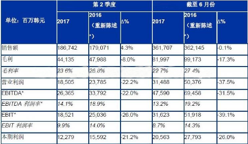 今年上半年,集團綜合銷售額達到 3,617.07 億韓元,同 2016 年前六個月(3,621.45 億韓元)相比下降 0.1%。