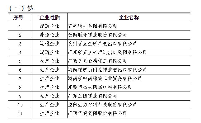 商務部關于公布2020-2021年度鎢、銻、白銀出口國營貿易企業名單的通知。 根據《中華人民共和國對外貿易法》和《中華人民共和國貨物進出口管理條例》,現公布2020-2021年鎢、銻、白銀出口國營貿易企業名單,請通知至相關企業。