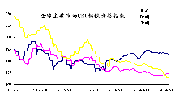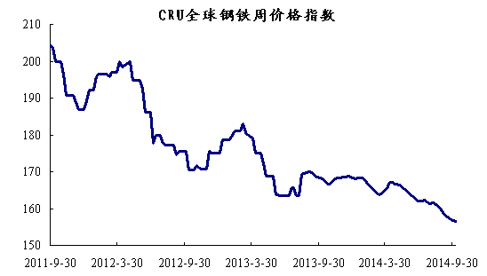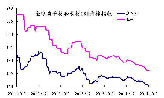 上周國際鋼市繼續整體走低。CRU國際鋼價綜合指數為156.58,CRU扁平材指數為151.73,CRU長材指數為168.45,北美市場CRU價格指數為178.15,歐洲市場CRU價格指數為153.75,亞洲市場CRU價格指數為148.92。