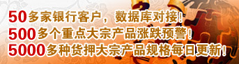 供應鏈金融 中商信息憑借龐大的產(chǎn)品資源優(yōu)勢,從2003年開始全面介入銀行的貨押盯市業(yè)務服務,并為融資、其他結算、理財服務、貸款等相關業(yè)務提供專業(yè)的數(shù)據(jù)支持、核心產(chǎn)品行業(yè)研究、客戶資源共享、貸款融資推薦等服務。現(xiàn)已為工商、建設、農(nóng)業(yè)、中國、交通五家國有銀行,平安、招商、興業(yè)、光大、華夏等十多家股份制銀行,天津、上海、吉林、廣州、青島等二十多家城市商業(yè)銀行以及一些外資銀行提供優(yōu)質服務,目前可提供的數(shù)據(jù)涵蓋15個產(chǎn)業(yè)6000多種商品,為降低銀行的質押風險提供了強有力的支持。