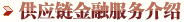 指銀行向客戶(核心企業)提供融資和其他結算、理財服務,同時向這些客戶的供應商提供貸款及時收達的便利,或者向其分銷商提供預付款代付及存活融資服務。(簡單地說,就是銀行將核心企業和上下游企業聯系在一起提供靈活運用的金融產品和服務的一種融資模式。)